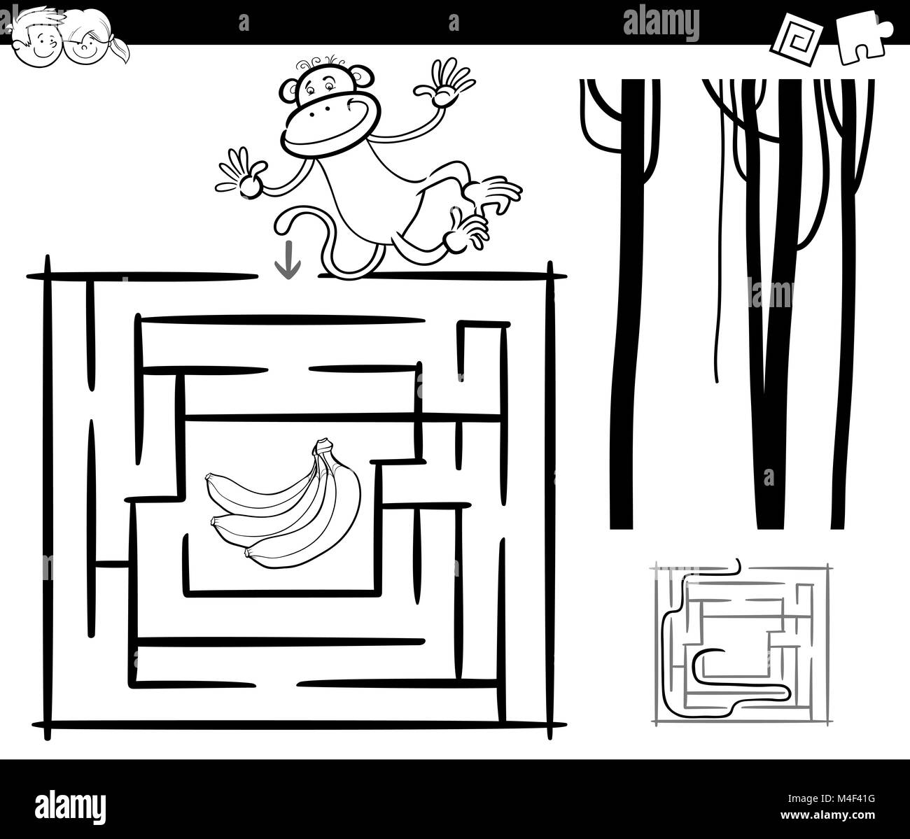 Monkey Coloring Pages Monkey Coloring Pages. All kinds of monkey coloring pages for kids to print and color -- bananas, balls and monkeying around! Hang in there! Show monkeys. Monkey with a banana. Monkey with a banana. Monkey with a banana. Monkey hanging from a vine. Draw your own monkey face!